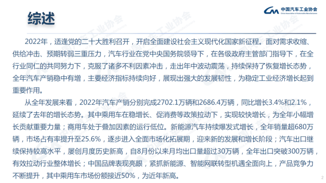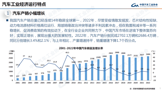 最全PPT看懂中汽協(xié)產(chǎn)銷數(shù)據(jù):2022年全年銷量2686.4萬輛,增長2.1%;中汽協(xié)預(yù)計(jì)2023年小幅增長3%左右