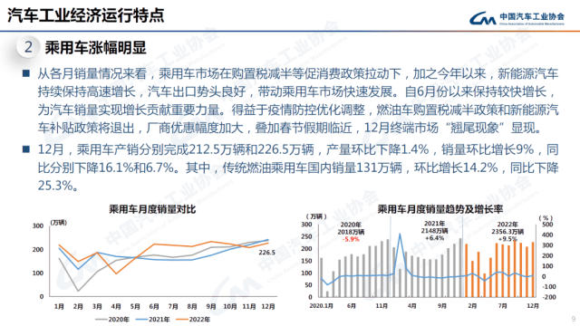 ? 乘用車:12月銷量226.5萬輛,下降6.7\%;全年累計(jì)銷量2356.3萬輛,增長9.5\%