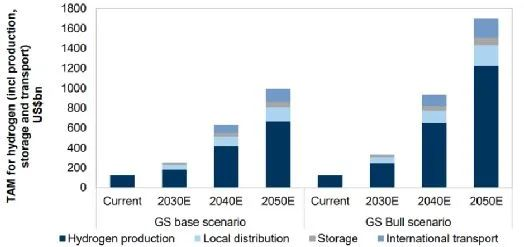 氫能生產(chǎn)的潛在總市場(chǎng)容量(TAM)可觀。