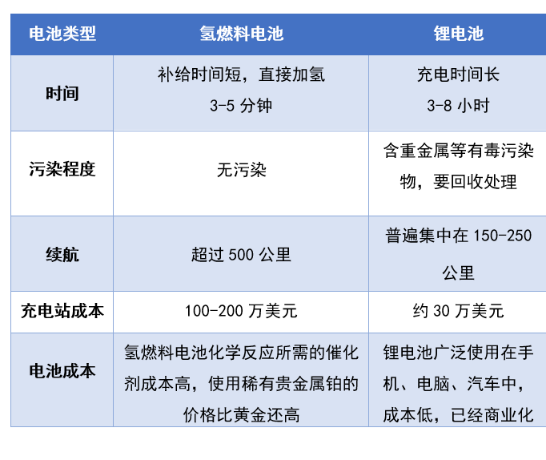 燃料電池汽車是電動汽車汽車電池的另一個重要方向,與鋰離子電池相比,可以清楚地看見兩者間有著明顯的優(yōu)缺點。