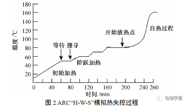 本實(shí)驗(yàn)采用ARC的典型工作模式為“加熱-等待-搜尋”模式,如圖2所示。通過加熱電池,直至檢測到電池自產(chǎn)熱之后,再進(jìn)入絕熱跟蹤階段,從而保持絕熱測試環(huán)境,使得電池產(chǎn)生的熱量完全被電池吸收并造成電池溫升。