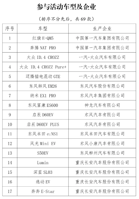 官降最高1.3萬元!此前有車企已打響新能源汽車下鄉(xiāng)第一槍!下列是參與下鄉(xiāng)活動的車型及企業(yè)。