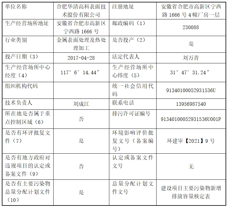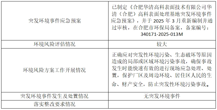 合肥華清高科表面技術(shù)股份有限公司 2025年第一季度信息公開表