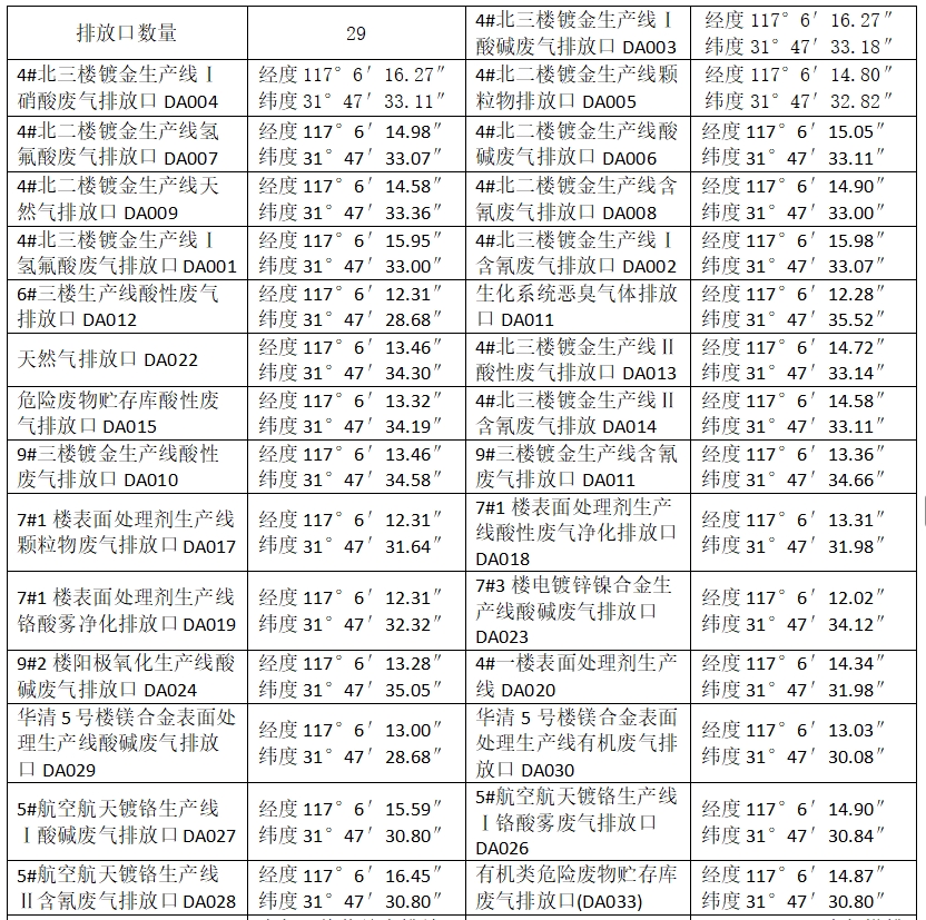 廢氣排放口信息