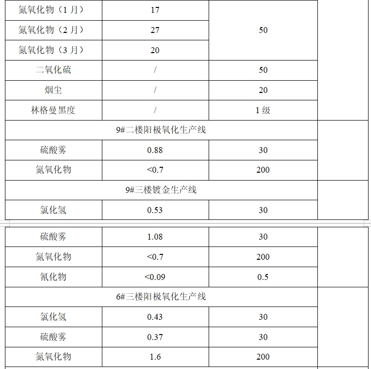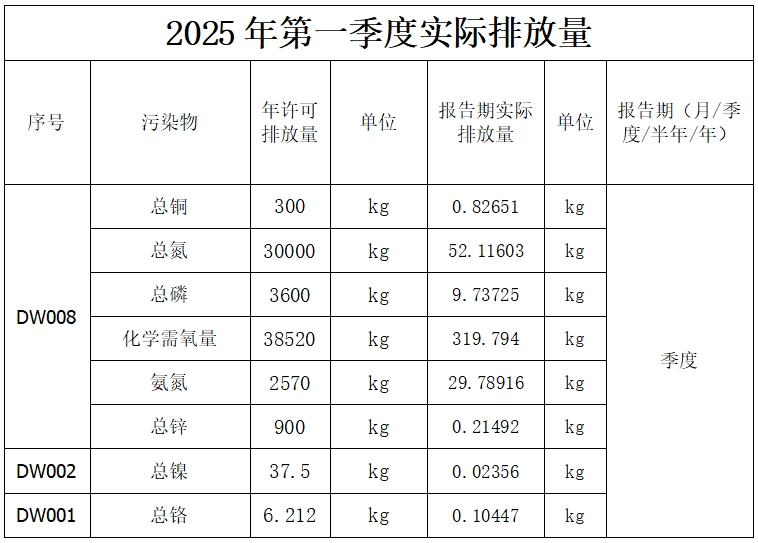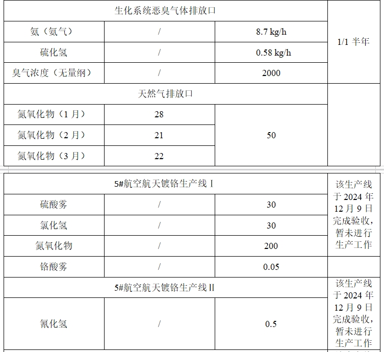 2025年第一季度廢氣排放信息