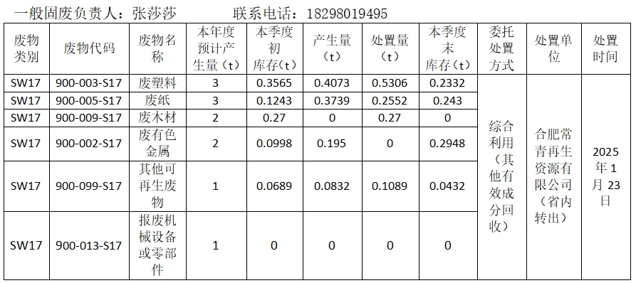 2025年第一季度危險廢物管理信息