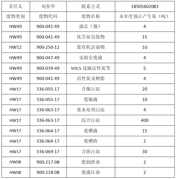2025年度危險廢物預計產(chǎn)生量信息